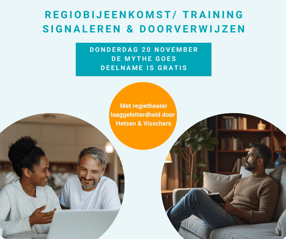 Wil je ontdekken hoe jij als werkgever, professional of betrokken inwoner laaggeletterdheid kunt aanpakken in je organisatie of omgeving (o.a. het signaleren en doorverwijzen)? Kom dan op 20 november naar de Regiobijeenkomst Zeeland in De Mythe in Goes. Een inspirerende middag met inzichten, praktische tips en uitwisselingen met experts en ervaringsdeskundigen. Deelname is gratis, aanmelden is wel verplicht!